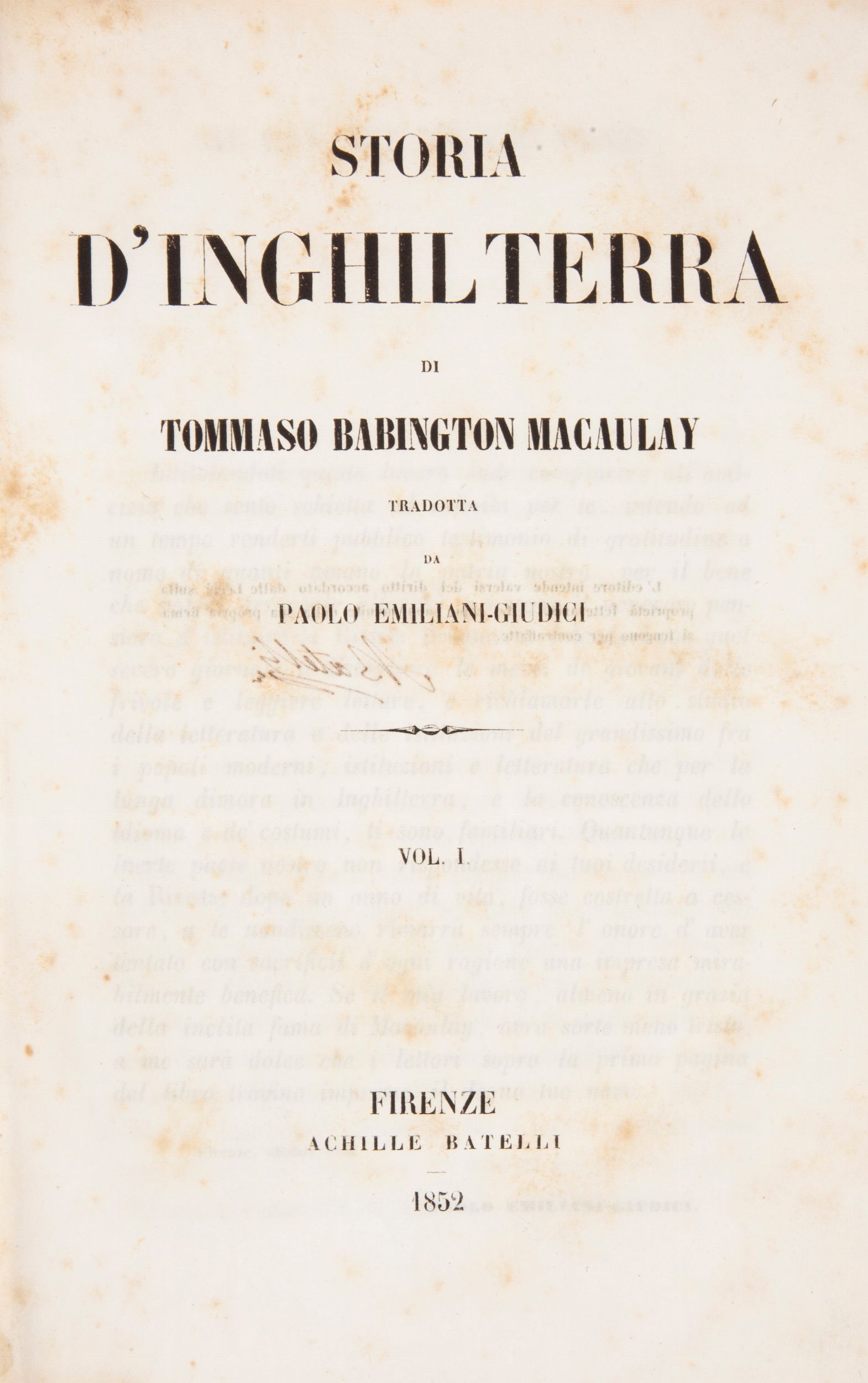 Thomas Babington Macaulay - Storia d'Inghilterra Tradotta da Paolo Emiliani Giudici [..]