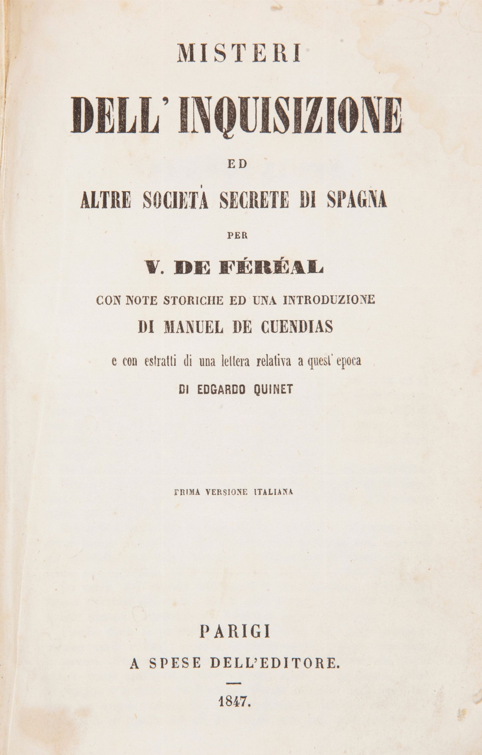 V. De Fereal - Misteri dell'Inquisizione e altre società secrete di Spagna. Con [..]