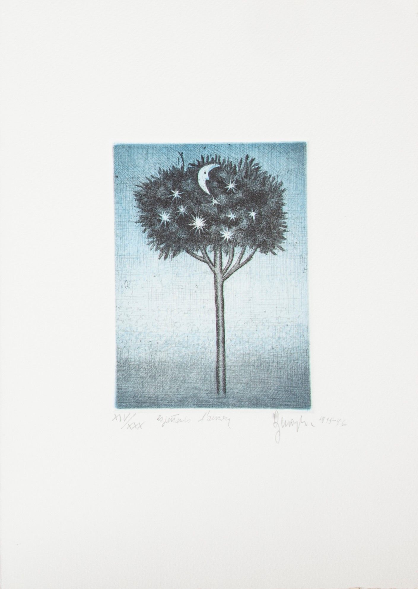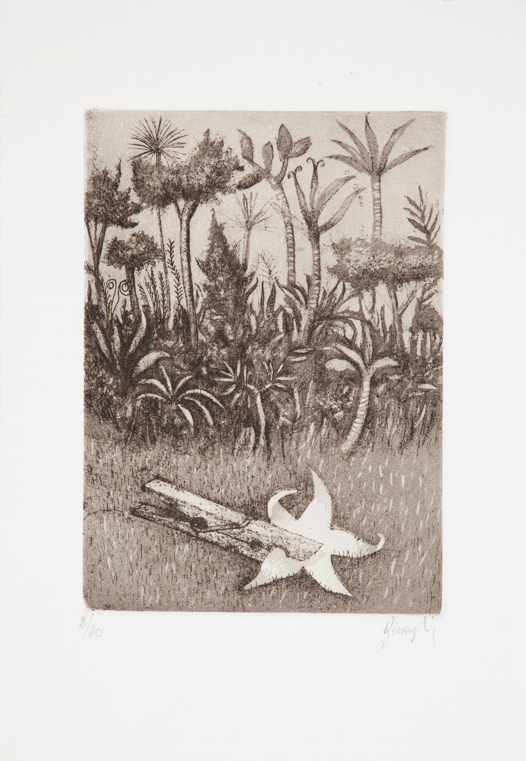 C) Stella Catturata, acquaforte, cm 16x12. Firma e numerazione 2/80. Timbro a secco Benaglia. Entro cartellina originale
