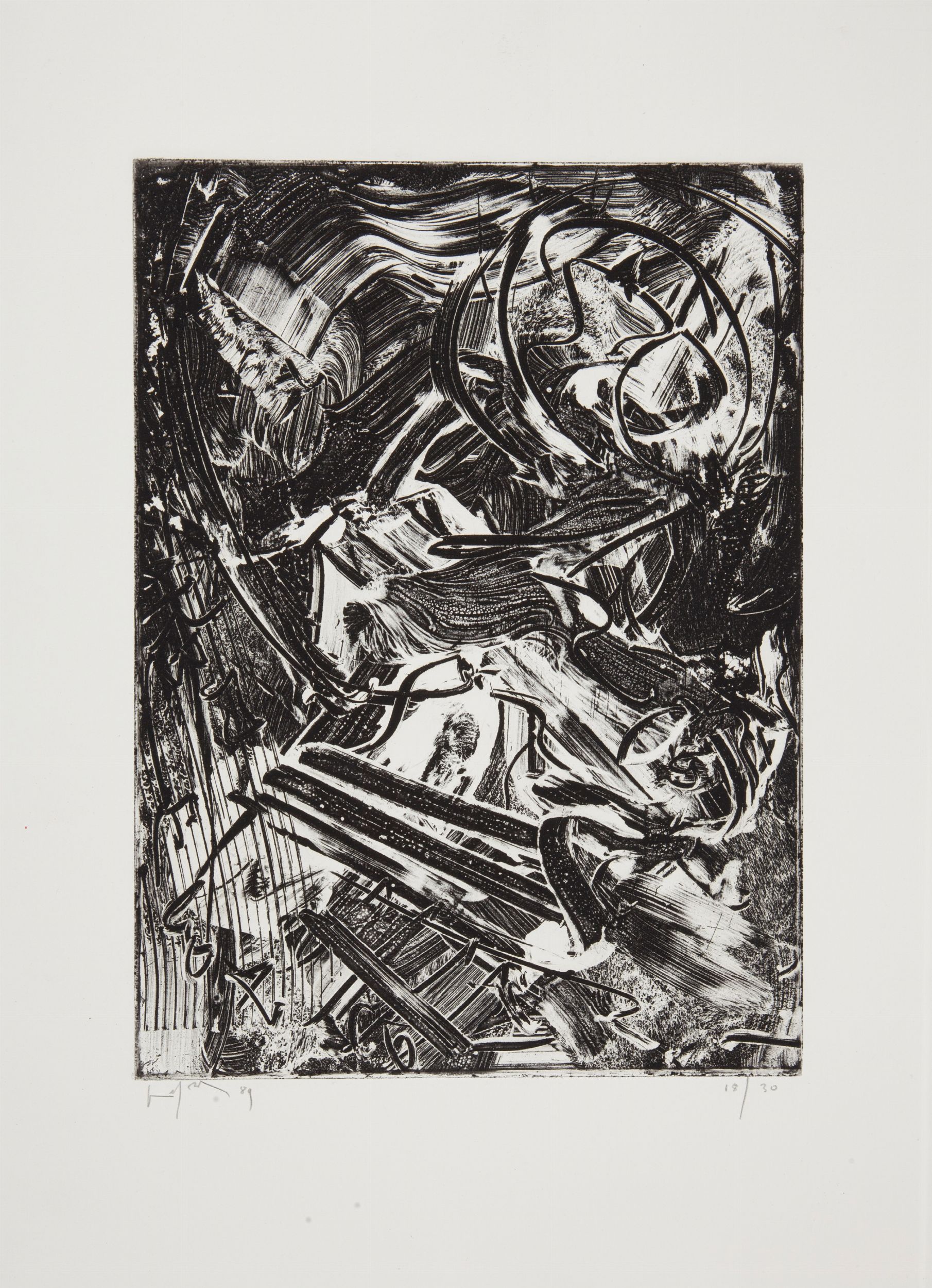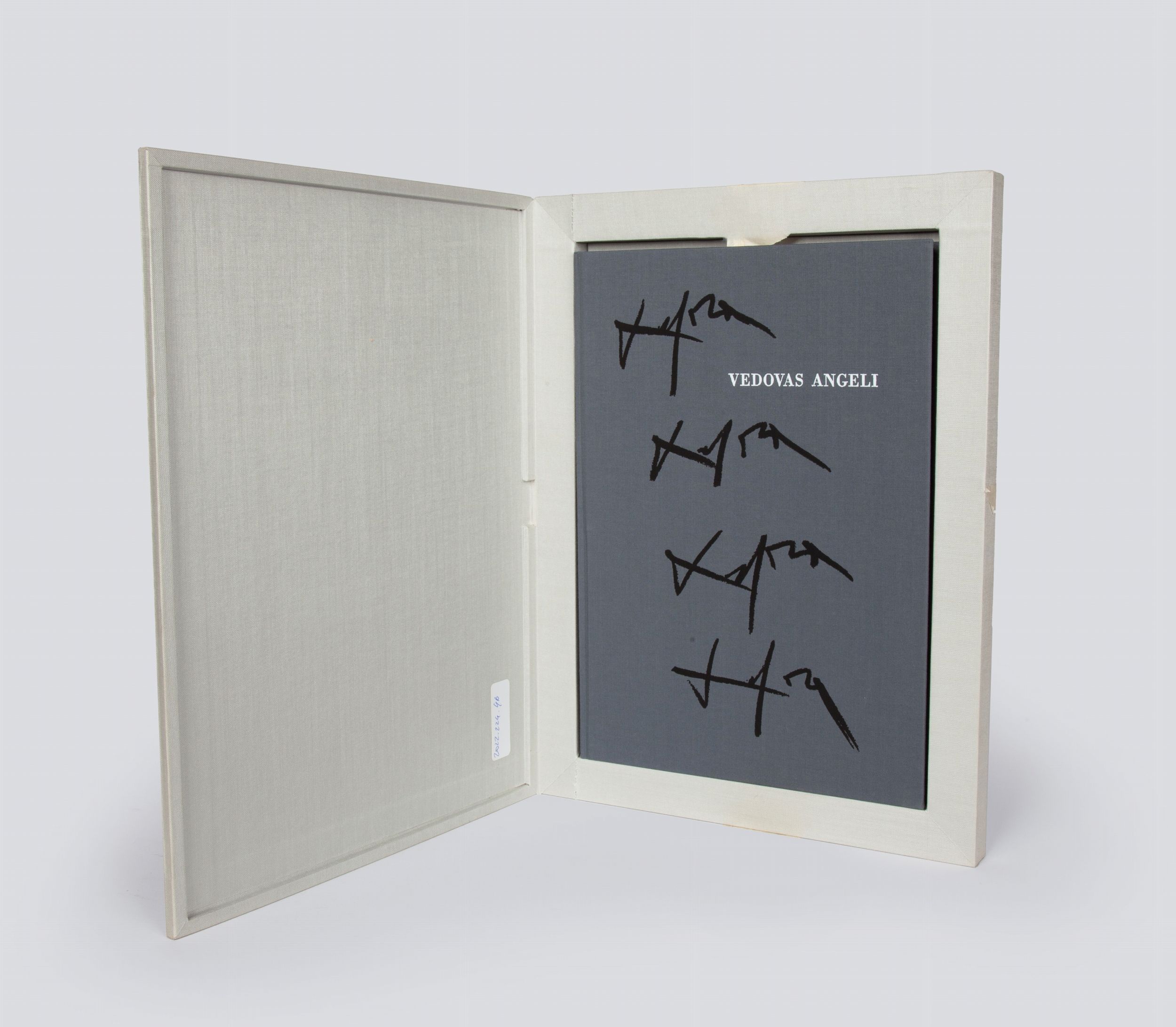 1989 Cofanetto contenente 1 Libro di Massimo Cacciari con illustrazioni di Emilio Vedova, ed 1 incisione all'acquaforte cm 37x27, firmata e numerata Vedova '89, 18/30.
