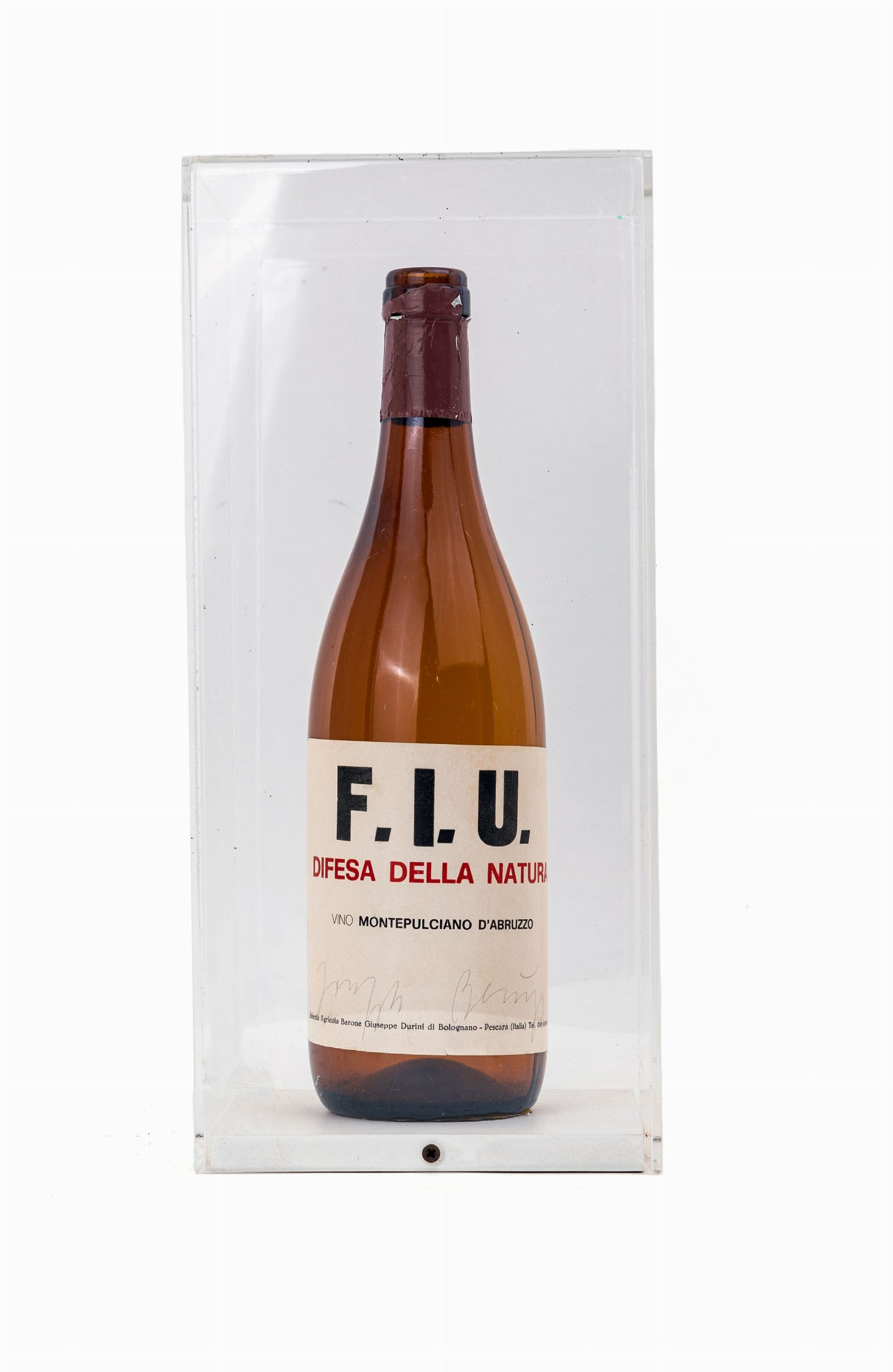 Multiplo (Bottiglia di vino entro teca in plexiglass), cm 32,5x15x15