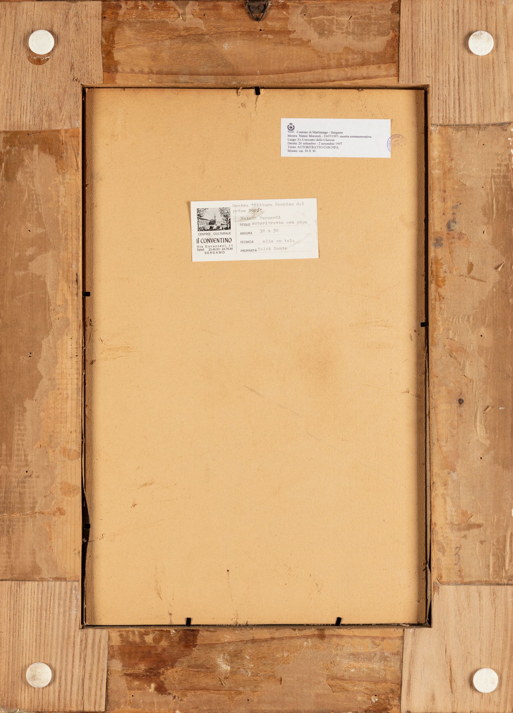 al retro, sul cartoncino di chiusura, timbri ed etichette di esposizione