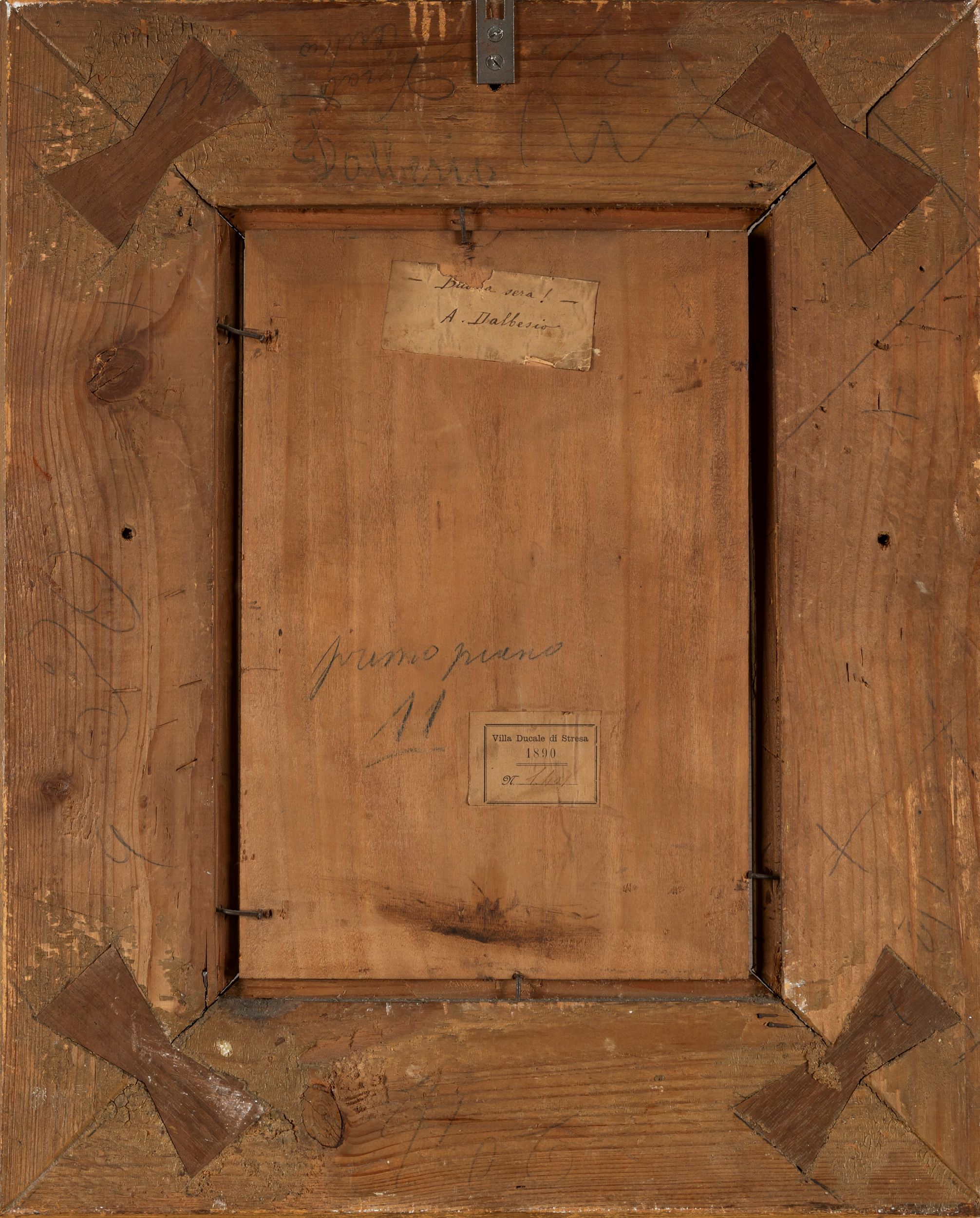 al retro, sul supporto, etichetta del pittore con titolo ed altra etichetta: Villa Ducale di Stresa 1890 con numero progressivo 1401