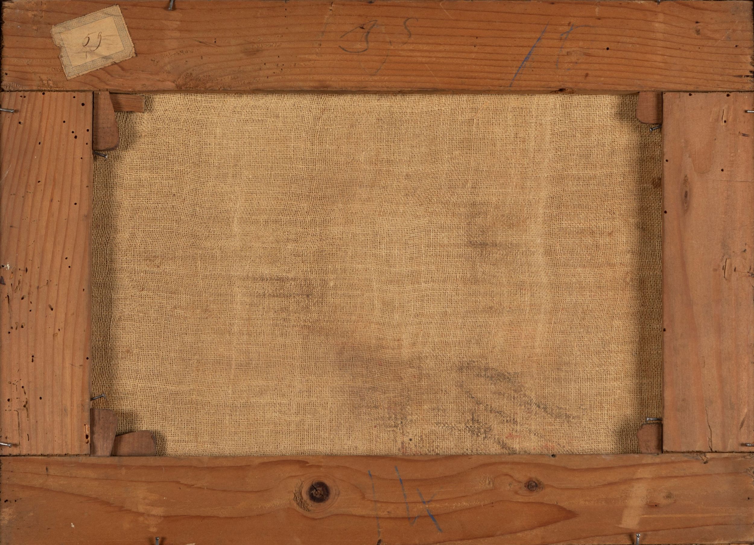 al retro, sul telaio, vecchia etichetta di inventario con numero: 59
