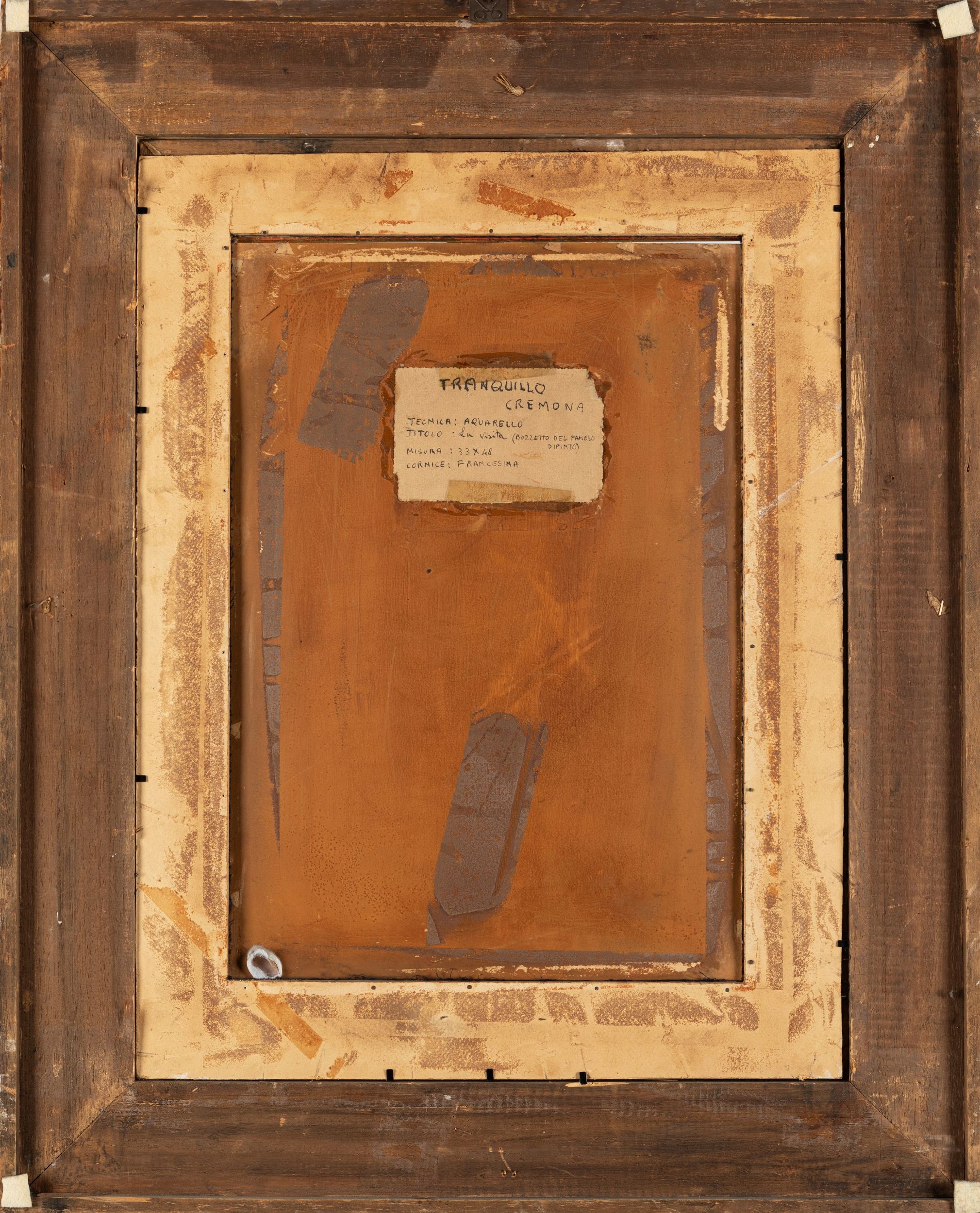al retro, sul cartone, vecchia etichetta con indicazioni sull'opera