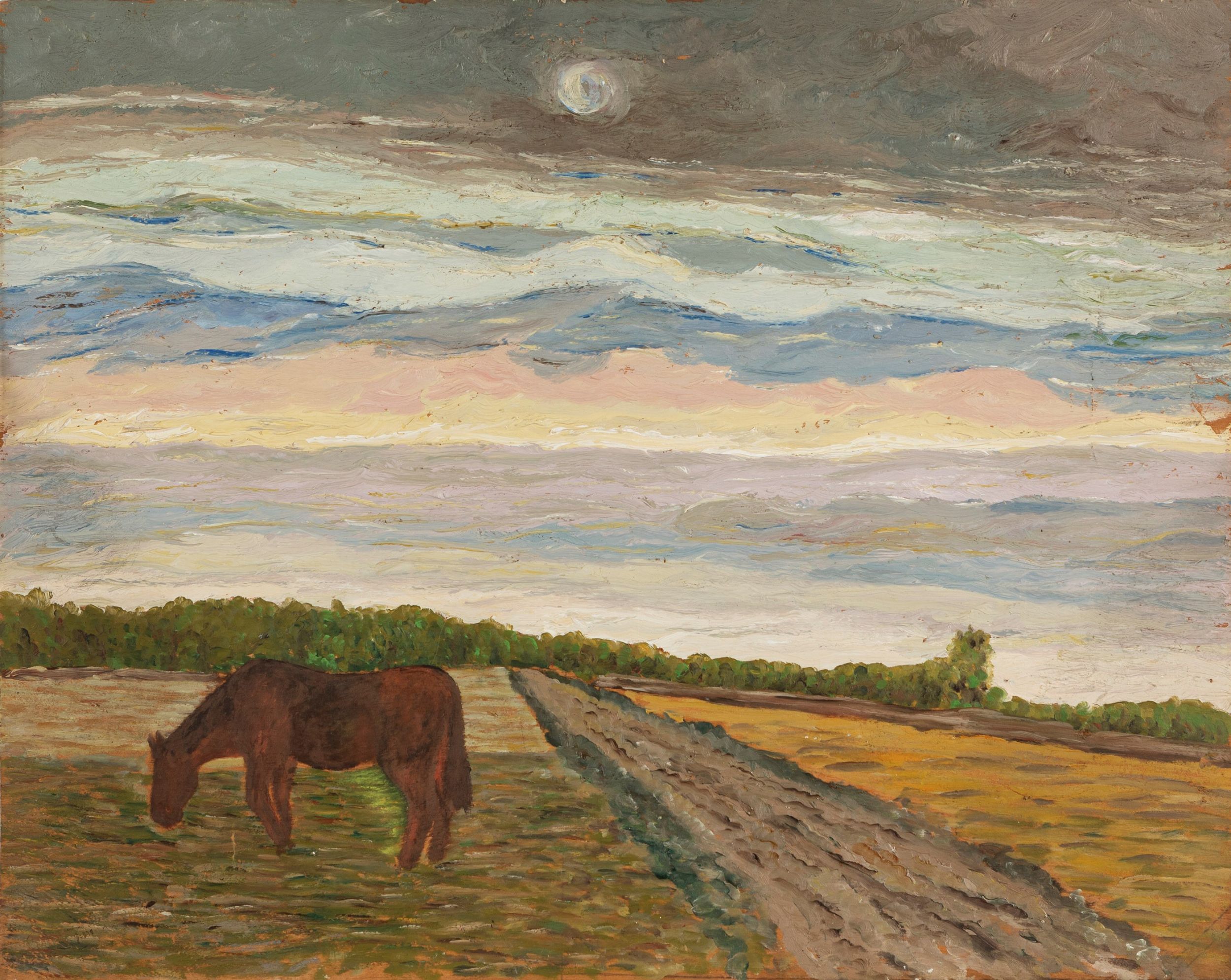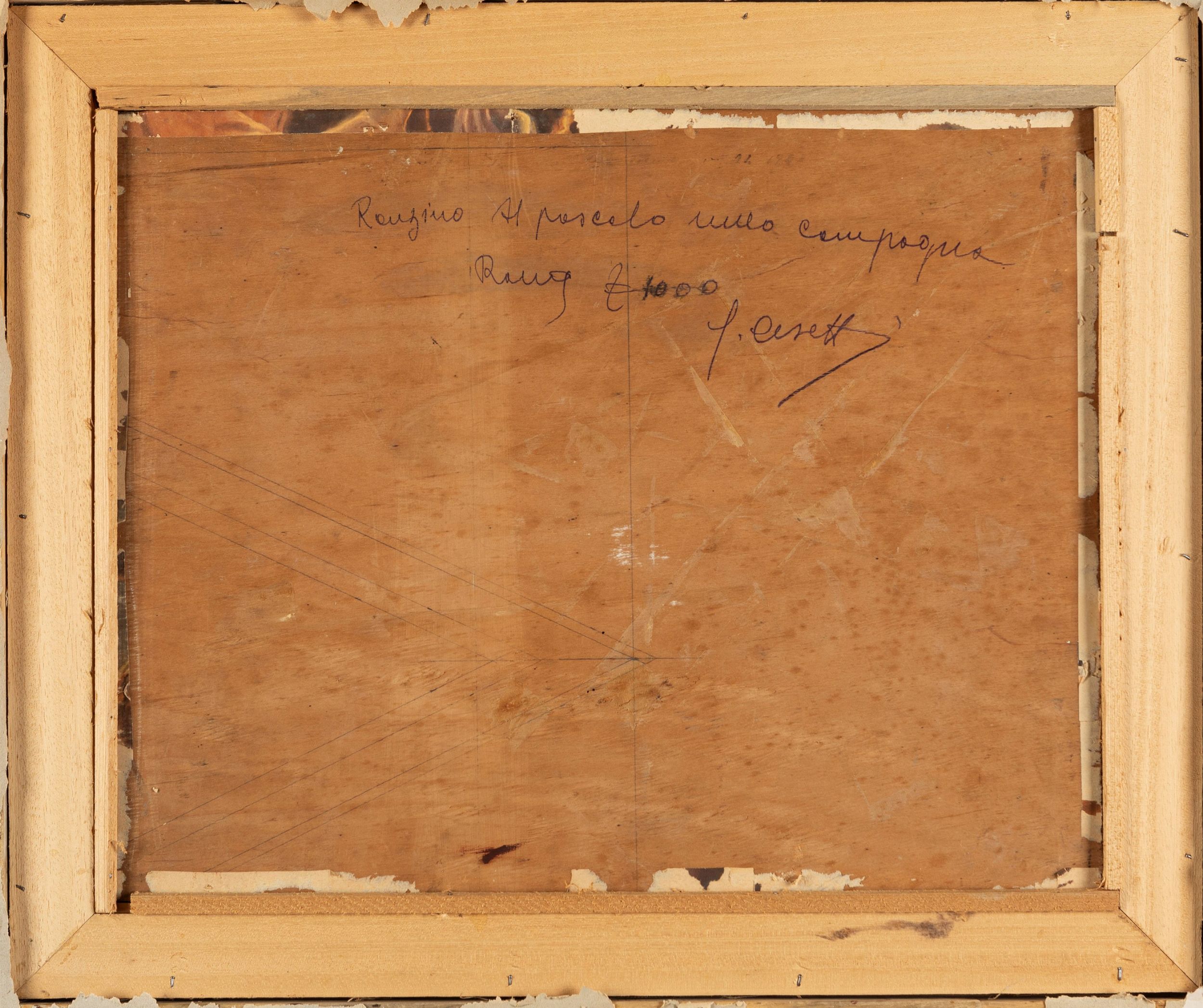al retro, sul compensato, titolato, locato e firmato: Ronzino al pascolo nella campagna / Roma / L 1000 / G. Cesetti