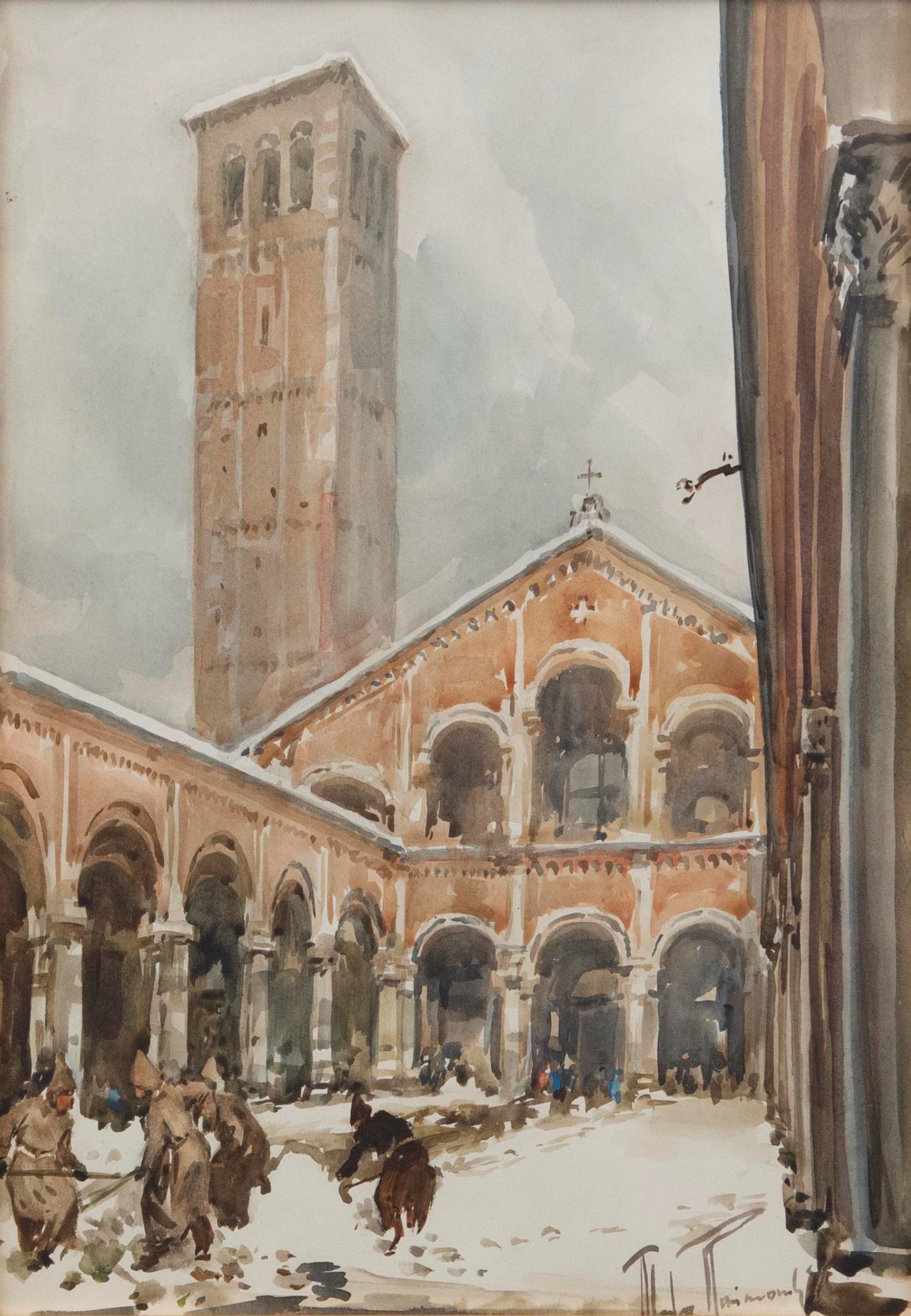 Vedute di Milano: Sant'Ambrogio; la Darsena; verso il Castello Sforzesco