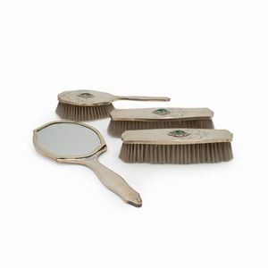 l. massima 28 cm. Italia, XX Sec. composto da: 3 spazzole uno specchio difetti