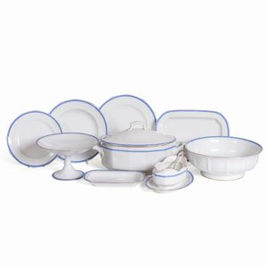 zuppiera 20x34x18 cm. Italia, XX Sec. decoro azzurro su fondo bianco e profilato in oro, marchio della produzione. [..]
