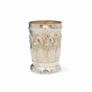 h. 12 cm. Inghilterra, XX Sec. corpo sbalzato e cesellato con teste di cavallo