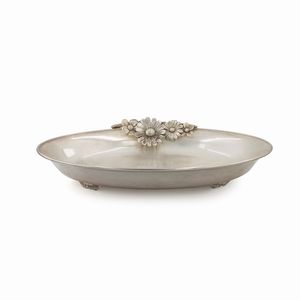 13,5x21 cm. Italia, XX Sec. orafo Cesa, Alessandria, corpo liscio di forma circolare sbalzato al centro con motivi [..]