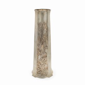 h. 38 cm. Italia, XX Sec. orafo Mario Poli, Milano, corpo sagomato sbalzato e cesellato con motivi vegetali, [..]