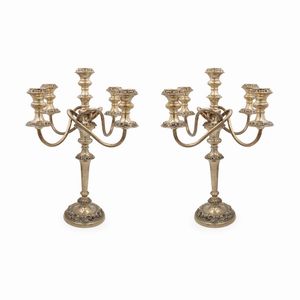 h. 46 cm. Italia, XX Sec. fusto tornito e cesellato con motivi vegetali, bracci di linea mossa, peso 3.858 gr