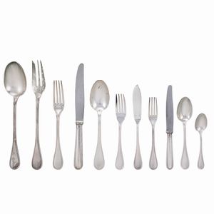Francia, XX Sec. modello Albi, composto da: 24 forchette 16 coltelli 16 cucchiai 12 forchette da pesce 12 coltelli [..]