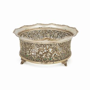 11,5, 25,5 cm. Sheffield, 1897 James Deakin & Sons, corpo traforato e cesellato con motivi floreali e vegetali, [..]