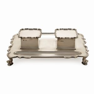 7,5x25x19 cm. Londra, 1919 orafo Harris & Son, base rettangolare a corpo liscio poggiante su quattro piedini, [..]