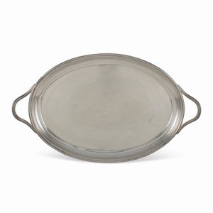 61x37 cm. Italia, 1970 sezione ovale con profilo e manici godronati, firmato, peso 2.476 gr.