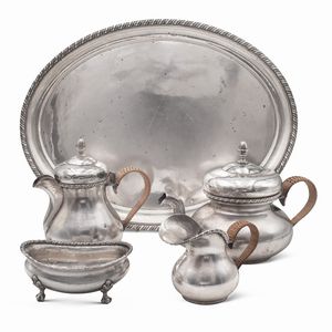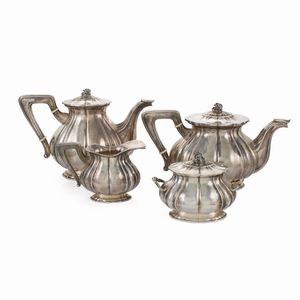 h. massima 19 cm. Italia, XX Sec. orafo Ricci e Co, Alessandria, composto da: una caffettiera una teiera una [..]