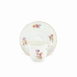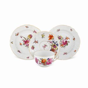 Dresda, XIX-XX Sec. in porcellana decorata in policromia con motivi floreali, profilo dorato, marchio della produzione, [..]