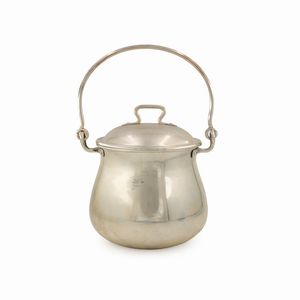 28x16 cm. Italia, XX Sec. orafo Cesa Alessandria, corpo liscio a foggia di paiolo, interno termico, peso lordo [..]