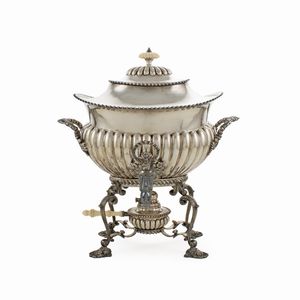 49,5x38,5 cm. Londra, 1810 orafo Paul Storr, corpi lisci con bordi baccellati e cesellati con motivi vegetali, [..]