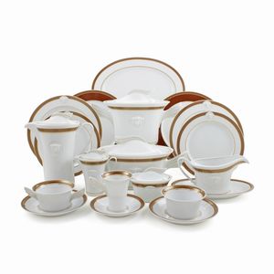 n Germania, XX Sec. servizio da tavola modello Medaillon Méandre Marron in porcellana bianca decorata con testa [..]
