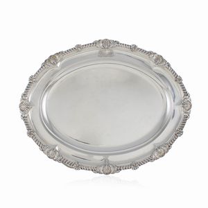 56,5x44,5 cm. Londra, 1810 orafo Paul Storr, corpo liscio con bordo baccellato e cesellato con motivi vegetali, [..]