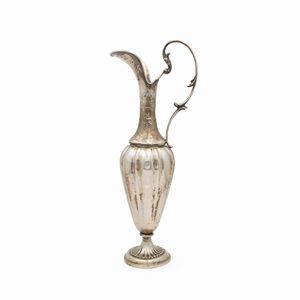 h. 39 cm. Italia, XX Sec. corpo baccellato, manico a voluta, peso 557 gr.