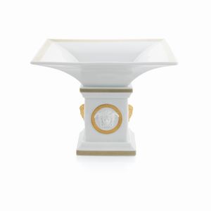 15x19,5x19,5 cm. Germania, XX Sec. alzata centrotavola serie Gorgona in porcellana bianca e dorata, marchio della [..]
