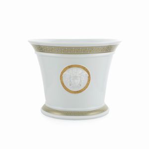 19,5x25,5 cm. Germania, XX Sec. cachepot collezione Gorgona in porcellana bianca e dorata, marchio della prod [..]