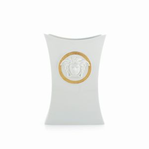 30x20,5x13 cm. Germania, XX Sec. vaso collezione Gorgona in porcellana bianca e dorata, marchio della produzi [..]