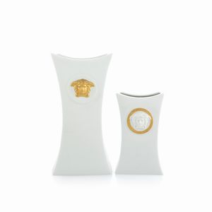 25x13x11,5 cm. - 17x10x7 cm. Germania, XX Sec. coppia di vasi collezione Gorgona in porcellana bianca e dorata, [..]