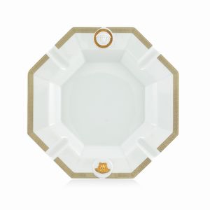 3x23x23 cm. Germania, XX Sec. posacenere collezione Gorgona in porcellana bianca e dorata, marchio della prod [..]
