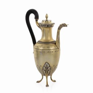 h. 22 cm. Francia, XIX Sec. orafo J.B. Piat, corpo piriforme cesellato con motivi Impero, ghirlande e motivi [..]
