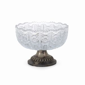 15x20 cm. Italia, XX Sec. coppa in cristallo molato trasparente poggiante su base circolare in argento