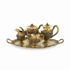 h. 17 cm. (caffettiera) Germania, XX Sec. decorata in oro con motivi vegetali, composto da: 6 tazzine con piattini [..]