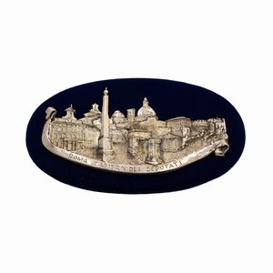 14,5x8 cm. Italia, XX Sec. orafo Mortet, Roma, cesellata a raffigurare una veduta fantastica di Roma, firmata, [..]