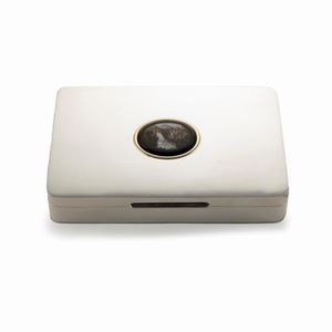 2,5x14x11,5 cm. Italia, XX Sec. orafo Brandimarte Firenze, corpo liscio, presa del coperchio con un Cammeo in [..]