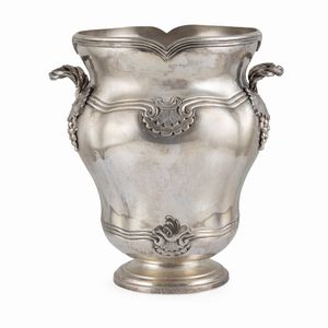 h. 33 cm. XIX-XX Sec. corpo cesellato con una figura maschile nell'atto di sorreggere una cornucopia, base ci [..]