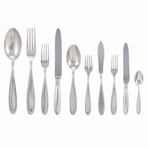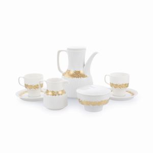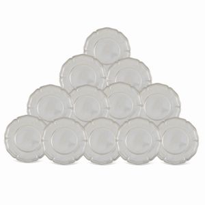 Italia, 1941 in porcellana avorio con decorazione dorata, marchio della produzione, usure, composto da: 24 piatti [..]