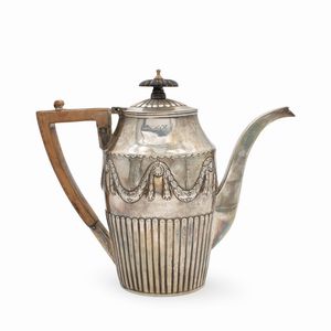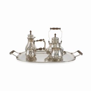 h. massima 19 cm. Italia, XX Sec. orafo Ricci e Co, Alessandria, composto da: una caffettiera una teiera una [..]