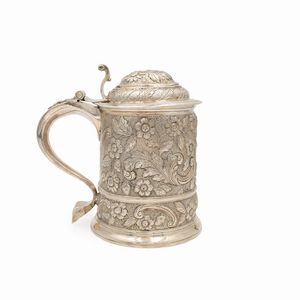 h. 27 cm. Italia, XX Sec. orafo Mario Poli, Milano, corpo liscio con manico sagomato, peso 756 gr.