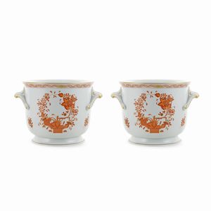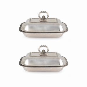 19x23 cm. Italia, XX Sec. corpo liscio con profili decorati con motivi vegetali e palmette, manici sagomati, [..]