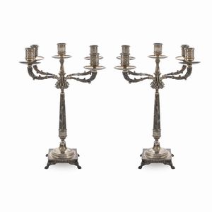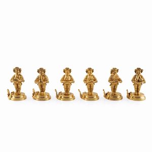 h. 9 cm. Italia, XX Sec. raffiguranti putti che sorreggono conchiglie, peso complessivo 953 gr.