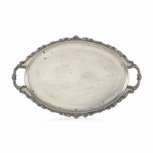 48x31 cm. Italia, XX Sec. orafa Fernanda Mercatelli, Firenze, sezione ovale, profilo e manici decorati con motivi [..]
