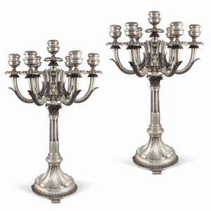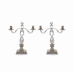 42,5x34x15 cm. Germania, XIX-XX Sec. fusto e bracci cesellati con intrecci vegetali, basi a plinto baccellate [..]