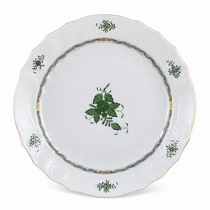 d. 35,5 cm. Ungheria, XX Sec. decoro Appony verde in porcellana monocroma verde, bordo Ozier e profilo dorato, [..]