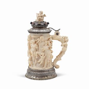 h. 26 cm. Germania, XIX-XX Sec. corpo interamente scolpito a raffigurare Il trionfo degli Dei con ninfe, centauri, [..]