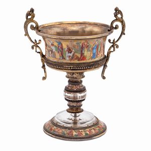 12x9,5 cm. Vienna, XIX Sec. base e coppa circolari smaltati e decorati con scene mitologiche ed elementi in cristallo [..]