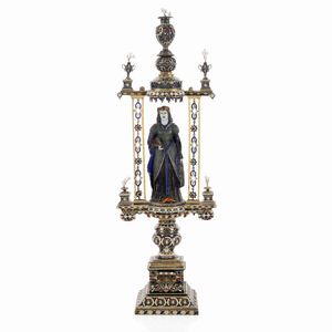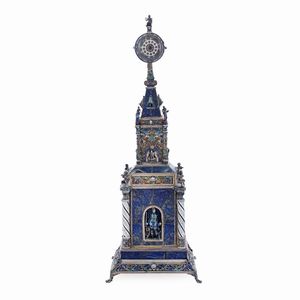 43x15x15 cm. Vienna, XIX Sec. struttura architettonica a torre, cesellata e decorata con smalti policromi con [..]
